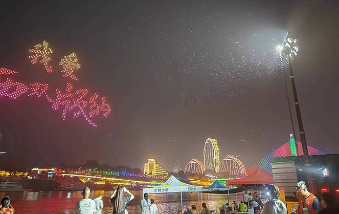 4月13日早晨,為保障龍舟比賽及夜間活動進行,支援小組克服了斜坡沙石踩滑、扛設備過江、船用設備調(diào)整等問題,將設備布置在了每一個需要的場所,龍舟比賽圓滿完成。4月13日晚,放飛孔明燈活動出現(xiàn)意外情況,尚為支援小組協(xié)助消防部門展開緊急救援,現(xiàn)場人流大、環(huán)境嘈雜,支援小組以最快的速度架起了一座應急燈塔,提供照明保障。