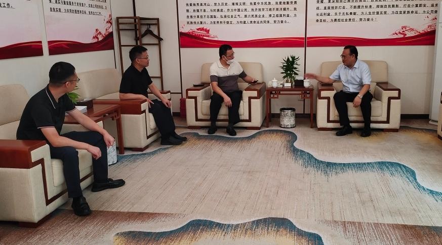 胡興向歐陽(yáng)慶一行詳細(xì)介紹了企業(yè)發(fā)展史及“三大戰(zhàn)略”等規(guī)劃,將尚為黨建引領(lǐng)企業(yè)經(jīng)營(yíng)發(fā)展的成熟經(jīng)驗(yàn)進(jìn)行了分享,對(duì)集團(tuán)核心產(chǎn)品及市場(chǎng)格局做了講解。一行人參觀融合展廳后落座貴賓室,就企業(yè)發(fā)展與規(guī)劃、合作前景進(jìn)行了深入交流。